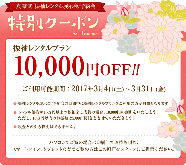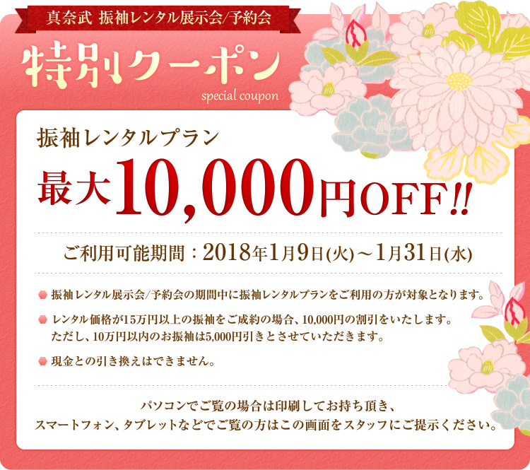 期間中は振袖レンタルクーポンも配布しておりますので、ぜひ足をお運びください。